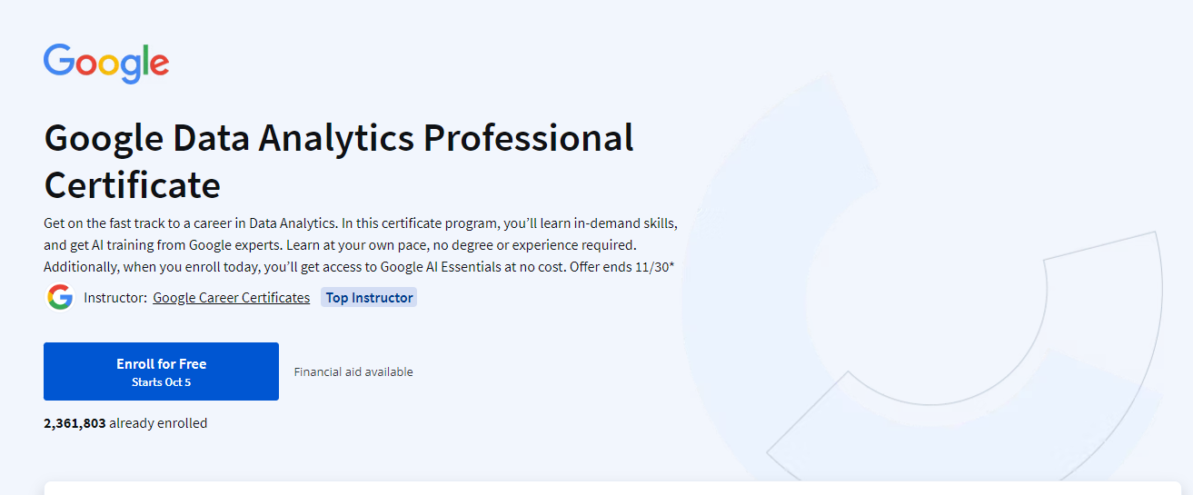 3. Financial aid: Available for those who qualify, making the course more accessible.This program provides all the tools and knowledge needed to become proficient in data analytics, preparing you for a successful career in the field.