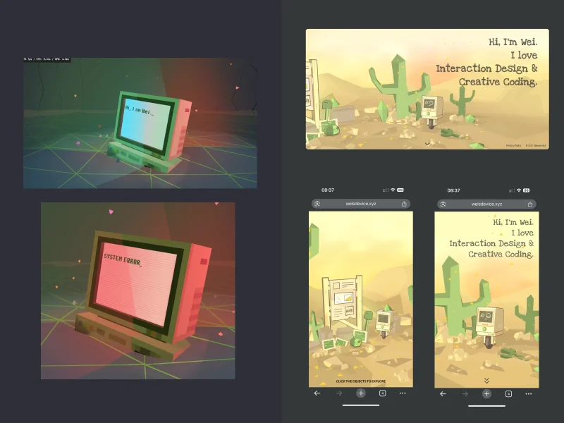 In this case study, I will walk you through the process of creating my portfolio website — from early prototypes and technical experiments to the final glitched-out 3D world that became Weisdevice. What began as a small personal exploration of form, sound, and motion gradually evolved into a reflection of my creative process: a user-friendly website that doesn’t confuse visitors, yet embraces an imperfect, sometimes chaotic style, deeply focused on the intersection of design, technology, and emotion.